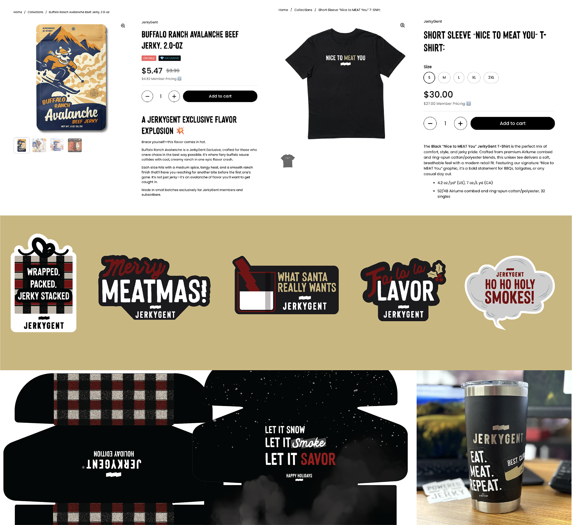 This work enabled consistent biweekly marketing campaigns and seasonal launches while reinforcing JerkyGent’s premium positioning across email, web, social, and packaging. By developing scalable design systems and production-ready assets, creative execution became more efficient within a small team environment, supporting faster rollouts and clearer product differentiation at higher price points.