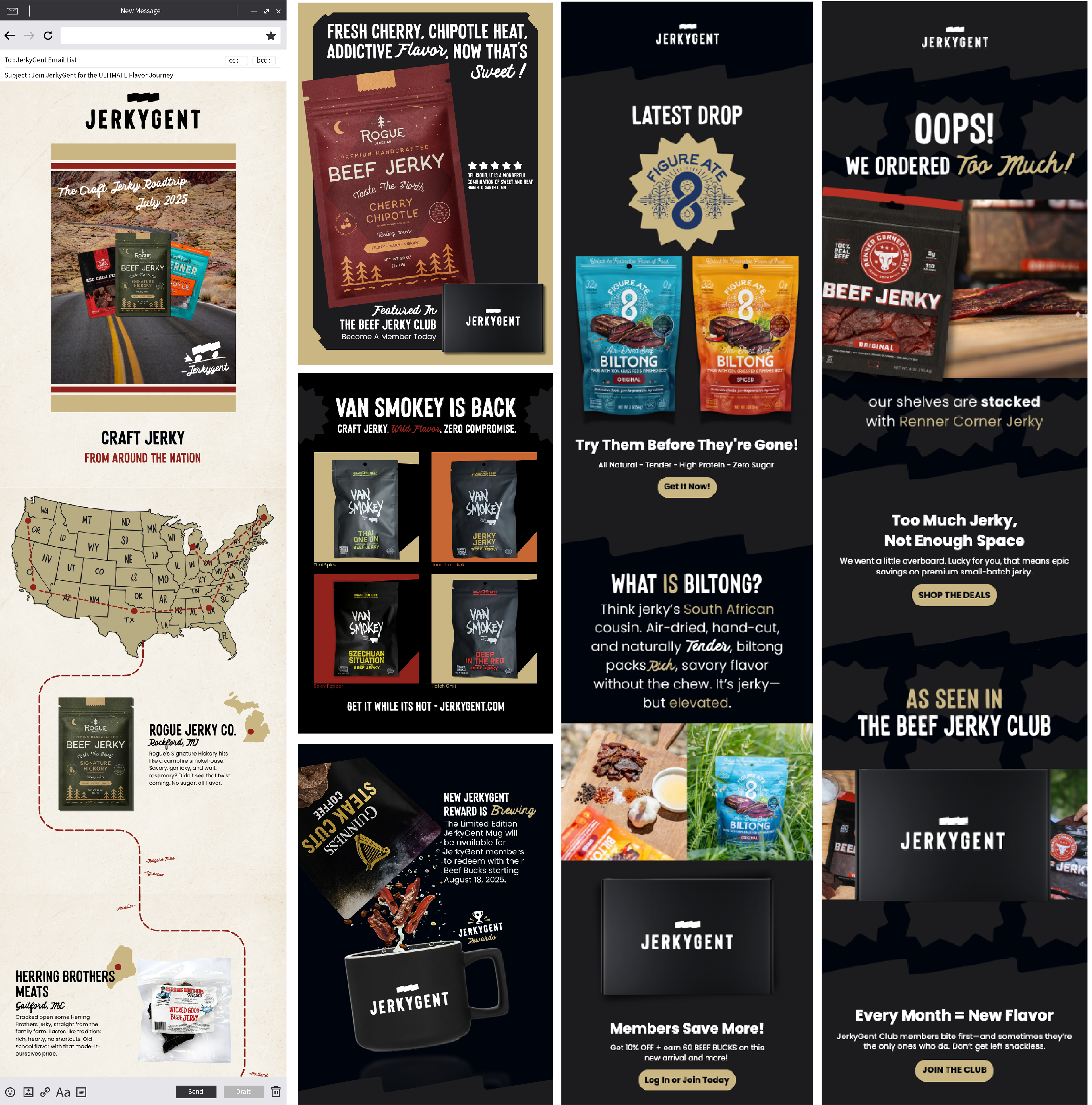 This project was created for JerkyGent and Rogue Beef Jerky to market the brands and individual products across email/sms/social media platforms.